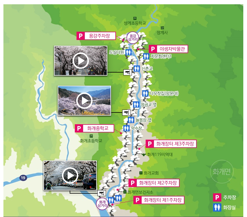 하동군 공식 홈페이지에서 하동 십리벚꽃길을 실시간으로 보실 수 있습니다.